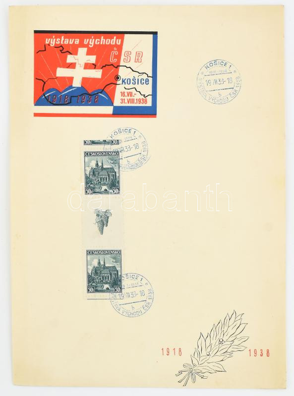 1938 Kassa Keleti Kiállítás bélyegzéses csehszlovák emléklap 14x21 cm https://www.darabanth.com/de/472-Fernauktion/472.0/Kunst-Dokumente-andere-Sammelgebiete/Drucksachen~500013/1938-Kassa-Keleti-Kiallitas-belyegzeses-csehszlovak-emleklap-14x21-cm~II3194527