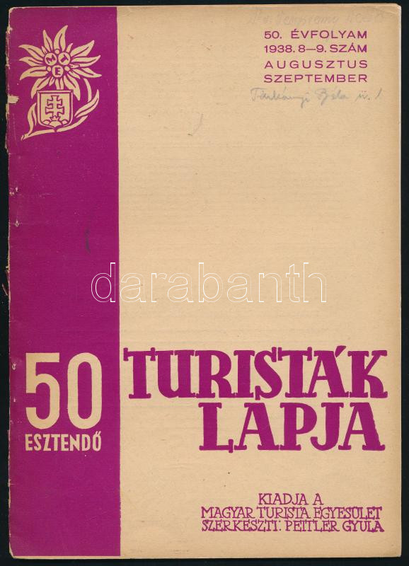 1938 Turisták Lapja - 50 esztendő (1888-1938). 50. évf. 8-9. sz., 1938... https://www.darabanth.com/de/472-Fernauktion/472.0/Kunst-Dokumente-andere-Sammelgebiete/Drucksachen~500013/1938-Turistak-Lapja-50-esztendo-1888-1938-50-evf-8-9-sz-1938-augusztus-szeptember-Kia~II3194685