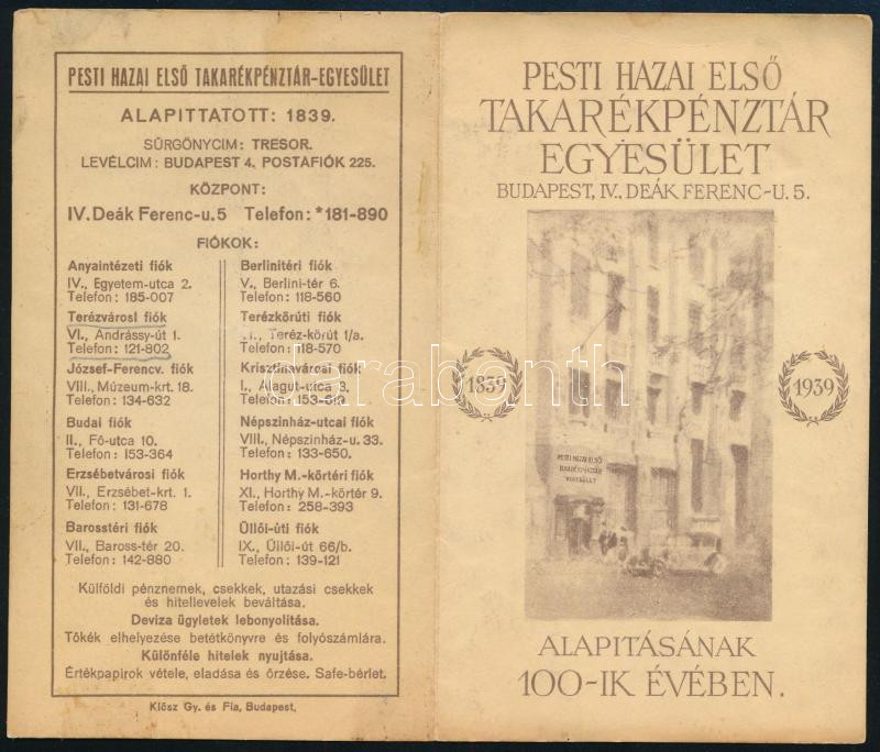 1939 A Pesti Hazai Első Takarékpénztár Egyesület alapításának 100-ik é... https://www.darabanth.com/de/472-Fernauktion/472.0/Kunst-Dokumente-andere-Sammelgebiete/Drucksachen~500013/1939-A-Pesti-Hazai-Elso-Takarekpenztar-Egyesulet-alapitasanak-100-ik-eveben-tarcanapta~II3199660