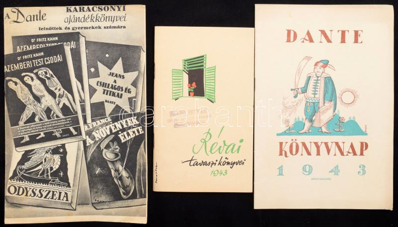 1942-1943 Révai és Dante kiadók 3 darab könyvjegyzéke, közte Dante kar... https://www.darabanth.com/de/472-Fernauktion/472.0/Kunst-Dokumente-andere-Sammelgebiete/Drucksachen~500013/1942-1943-Revai-es-Dante-kiadok-3-darab-konyvjegyzeke-kozte-Dante-karacsonyi-ajandekkonyv~II3201806