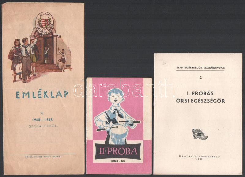 1949-1965 Iskolai emléklap + Kisdobos II. próba füzet + I. próbás őrsi... https://www.darabanth.com/de/472-Fernauktion/472.0/Kunst-Dokumente-andere-Sammelgebiete/Drucksachen~500013/1949-1965-Iskolai-emleklap-plus-Kisdobos-II-proba-fuzet-plus-I-probas-orsi-egeszsegor-Ifju-E~II3145898
