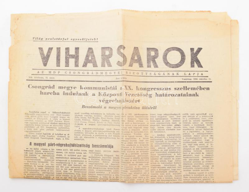 1956 Viharsarok, az MDP Csongrádmegyei Bizottságának lapja XII. évf. 7... https://www.darabanth.com/de/472-Fernauktion/472.0/Kunst-Dokumente-andere-Sammelgebiete/Drucksachen~500013/1956-Viharsarok-az-MDP-Csongradmegyei-Bizottsaganak-lapja-XII-evf-73-sz-1956-marc-25-~II3168200