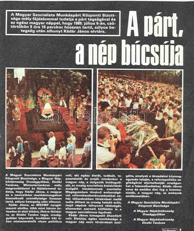 1989 Ország-Világ Magazin, benne Kádár János temetése, akt poszter https://www.darabanth.com/de/472-Fernauktion/472.0/Kunst-Dokumente-andere-Sammelgebiete/Drucksachen~500013/1989-Orszag-Vilag-Magazin-benne-Kadar-Janos-temetese-akt-poszter~II3202430