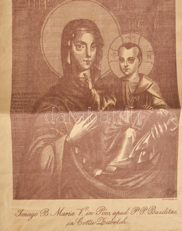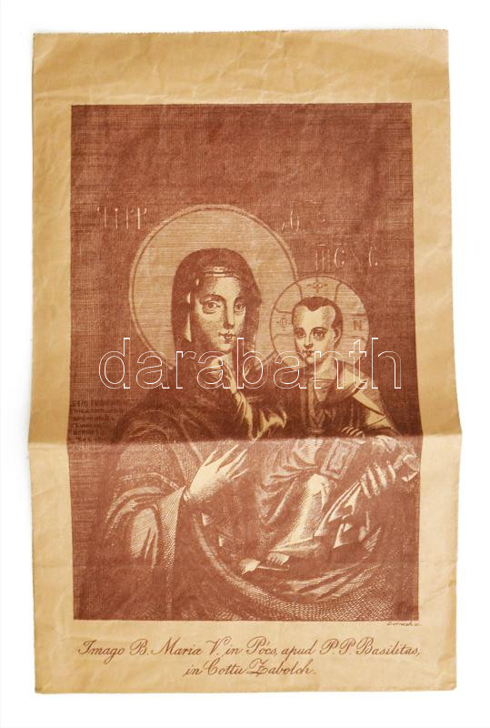 1991 Máriapócs, a II. János Pál pápa által tartott szentmise alkalmából kiadott papírzacskó, rajta a máriapócsi kegyképpel és a mise helyszínrajzával, 40x24,5 cm
