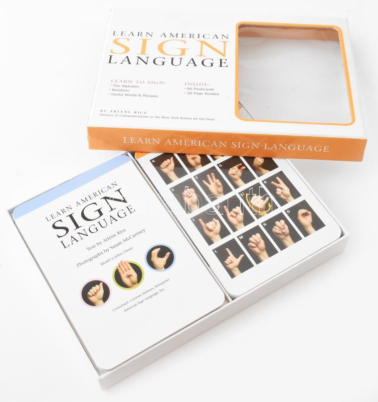Learn American Sign Language. By Arlene Rice, Director of Communications at the New York School for the Deaf. / Amerikai jelnyelv oktatócsomag, képes kártyákkal, angol nyelven. Eredeti dobozában, bontatlan.