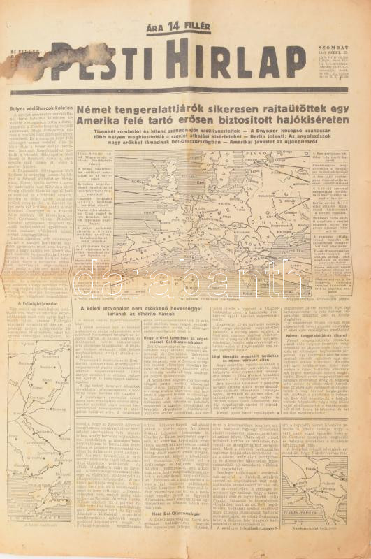 Pesti Hírlap 1943. szept. 25-i száma, foltos https://www.darabanth.com/de/472-Fernauktion/472.0/Kunst-Dokumente-andere-Sammelgebiete/Drucksachen~500013/Pesti-Hirlap-1943-szept-25-i-szama-foltos~II3197961