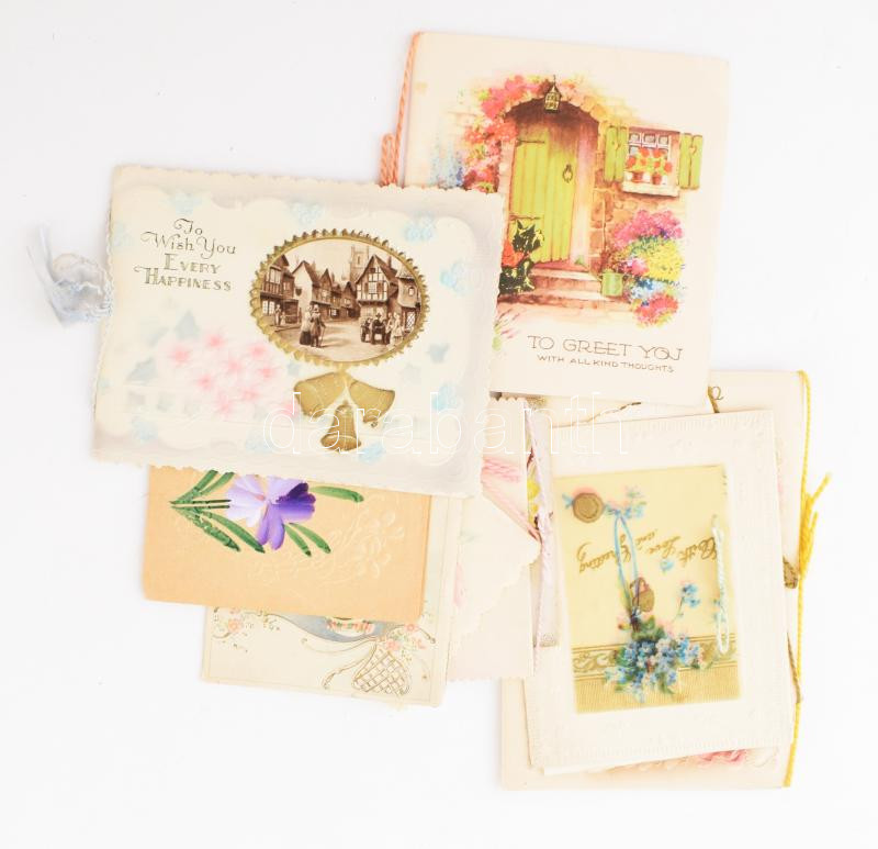 Régi, díszes, angol nyelvű üdvözlőkártyák, össz. 12 db https://www.darabanth.com/de/472-Fernauktion/472.0/Kunst-Dokumente-andere-Sammelgebiete/Drucksachen~500013/Regi-diszes-angol-nyelvu-udvozlokartyak-ossz-12-db~II3168091
