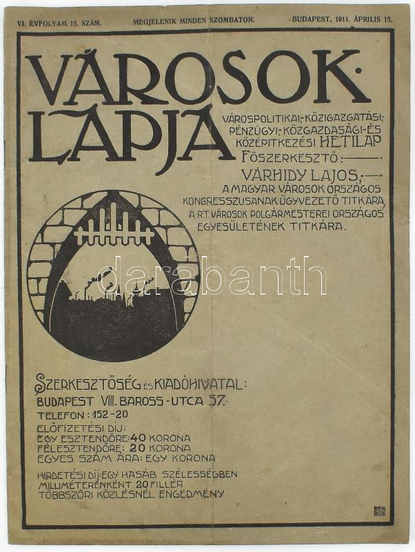 Városok Lapja 1911. április 15-i száma, VI. évfolyam 15. szám. Főszerk... https://www.darabanth.com/de/472-Fernauktion/472.0/Kunst-Dokumente-andere-Sammelgebiete/Drucksachen~500013/Varosok-Lapja-1911-aprilis-15-i-szama-VI-evfolyam-15-szam-Foszerkeszto-Varhidy-Lajos-~II3198828