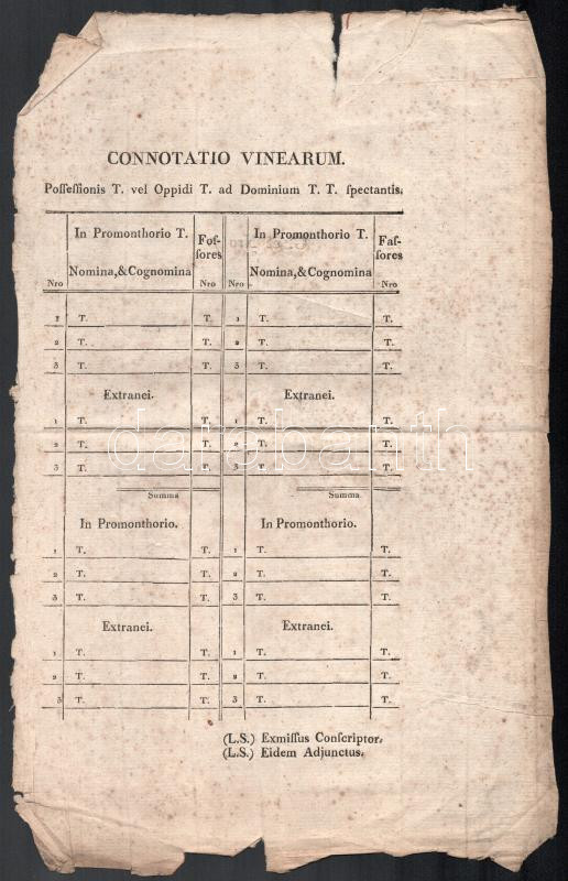 cca 1800 Budafoki szőlők nyilvántartó táblázata. Üres nyomtatvány https://www.darabanth.com/de/472-Fernauktion/472.0/Kunst-Dokumente-andere-Sammelgebiete/Drucksachen~500013/cca-1800-Budafoki-szolok-nyilvantarto-tablazata-Ures-nyomtatvany~II3148362