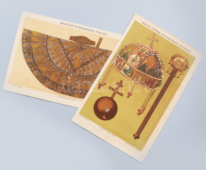 cca 1890-1900 A magyar koronázási jelvények, 2 db színes melléklet (kromolitográfia) a Pallas Nagy Lexikonából. Bp., Czettel és Deutsch, lapméret: 23,5x15 cm