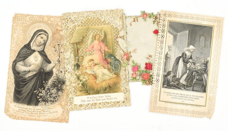 Beschreibung: cca 1890 4 db csipke litho szentkép vegyes állapotban