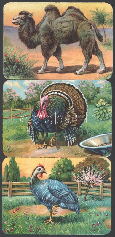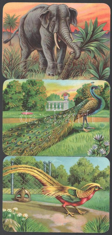 Beschreibung: cca 1900 5 db litho állatos kép (elefánt, páva, stb.), hajtottak