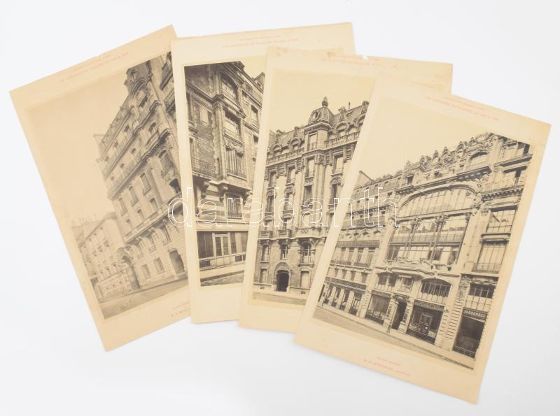 cca 1910-1920 L'architecture moderne a Paris / Párizsi épületek a századfordulóról, 5 db nagyméretű nyomat, változó állapotban, sérülésekkel, lapméret: 40x25 cm körül