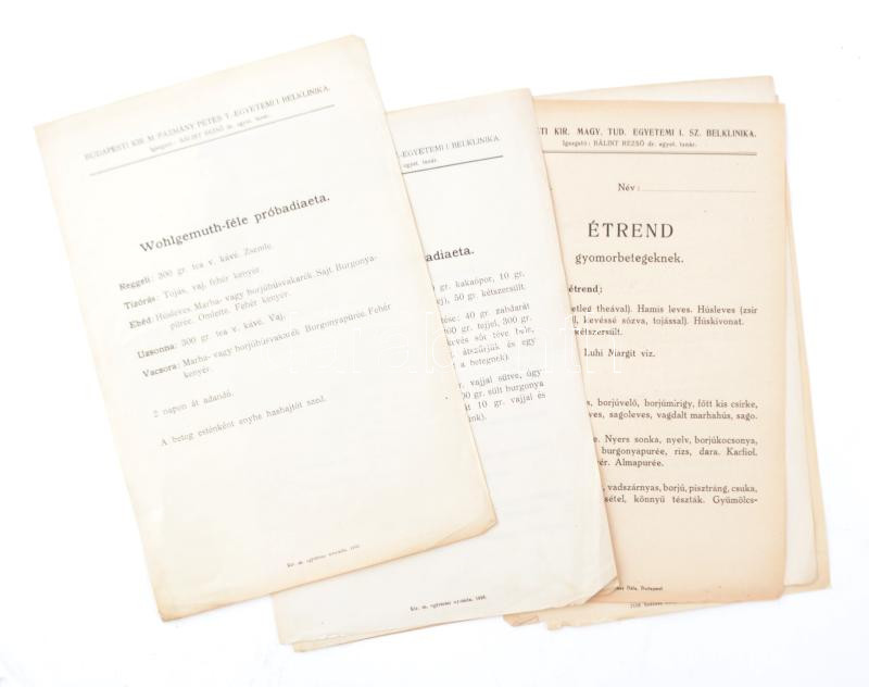 cca 1925 Budpesti Kir. M. Pázmány Péter T.-Egyetemi I. Belklinika 7 db... https://www.darabanth.com/de/472-Fernauktion/472.0/Kunst-Dokumente-andere-Sammelgebiete/Drucksachen~500013/cca-1925-Budpesti-Kir-M-Pazmany-Peter-T-Egyetemi-I-Belklinika-7-db-etrendje-nehany-lap-ki~II3144345