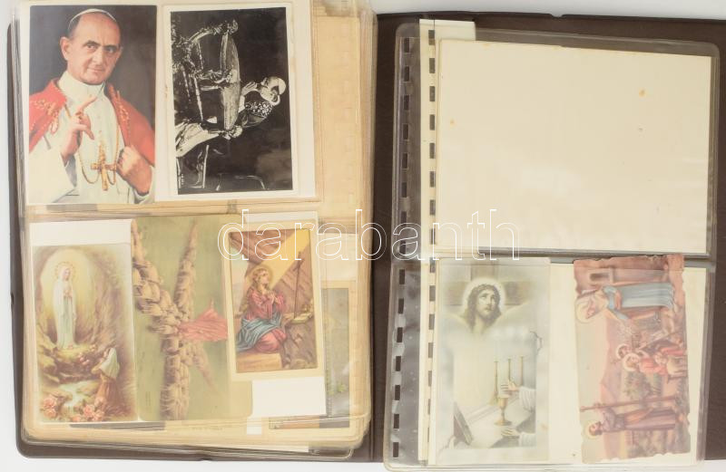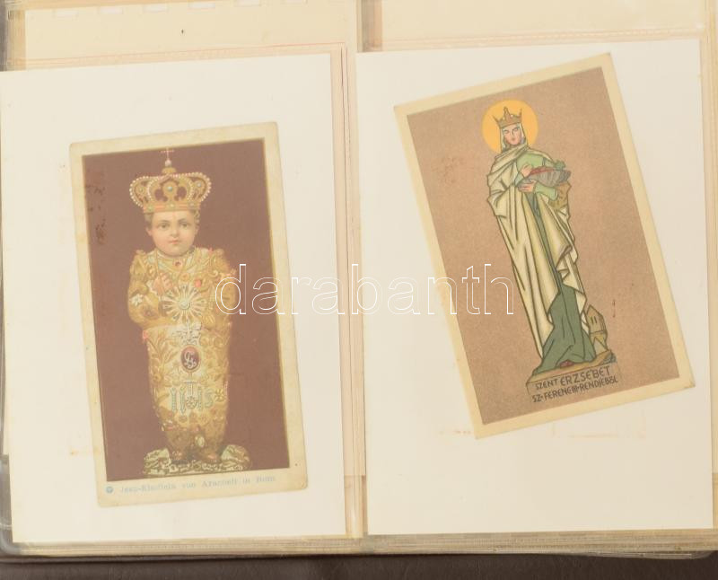 Beschreibung: cca 1930-1950 74 darabos szentkép gyűjtemény, benne papok, modern szentek képeivel is, rendezetten, berakóban