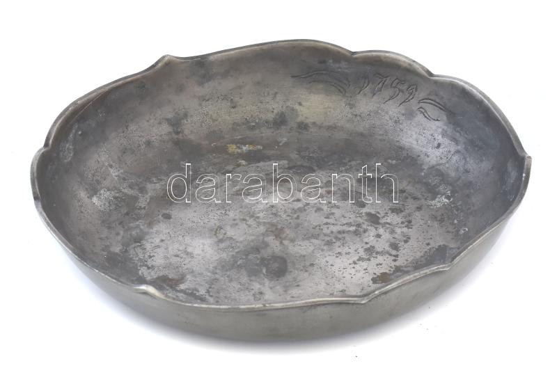 Beschreibung: Antik ón kínálótál, jelzett, belsejében 1751-es dátummal, d: 22 cm