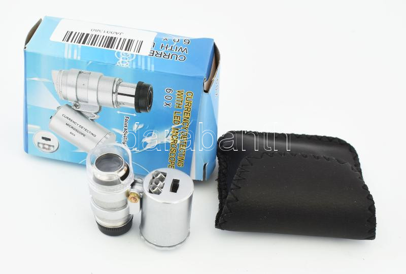 Beschreibung: Ékszerész nagyító, LED mikroszkóp funkcióval, 60x, dobozában