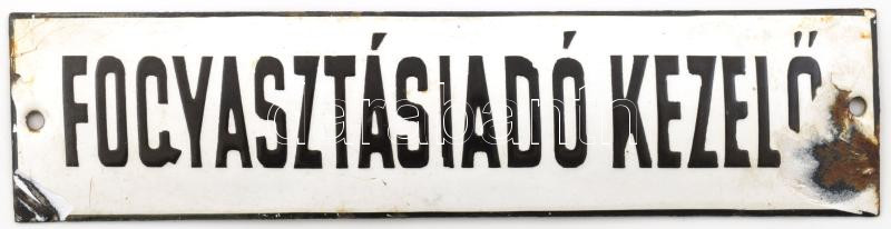 Beschreibung: Fogyasztásiadó kezeleő. régi zománc tábla kis sérüléssel 24x6cm