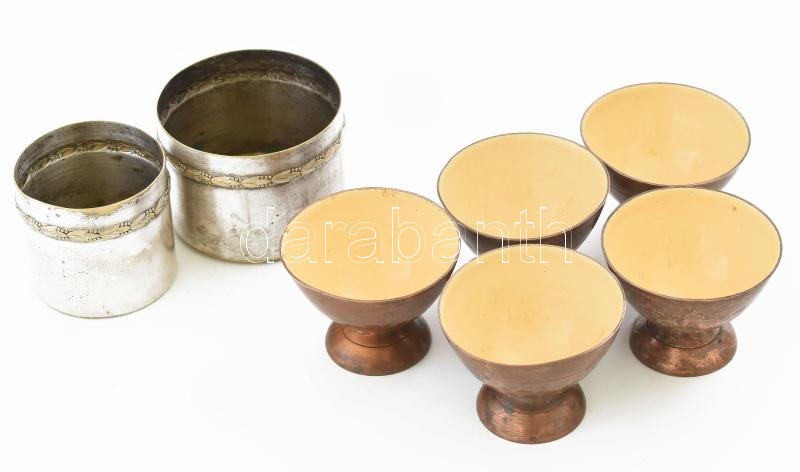 Régi ezüstözött réz edénykék 5-6 cm illetve 5 db iparművész kupica https://www.darabanth.com/de/472-Fernauktion/472.0/Kunst-Dokumente-andere-Sammelgebiete/Flohmarkt~1000015/Regi-ezustozott-rez-edenykek-5-6-cm-illetve-5-db-iparmuvesz-kupica~II3125017