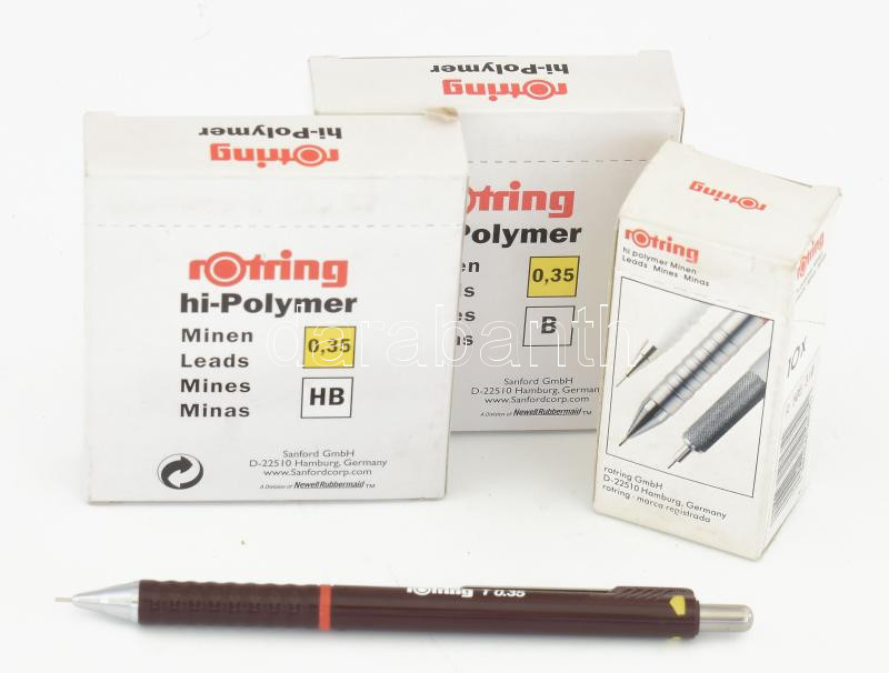 Rotring 0.35 töltőceruza, cca 100 db H, 120 db B, 120 db HB ceruzahegy... https://www.darabanth.com/de/472-Fernauktion/472.0/Kunst-Dokumente-andere-Sammelgebiete/Flohmarkt~1000015/Rotring-035-toltoceruza-cca-100-db-H-120-db-B-120-db-HB-ceruzahegy-betettel~II3198809