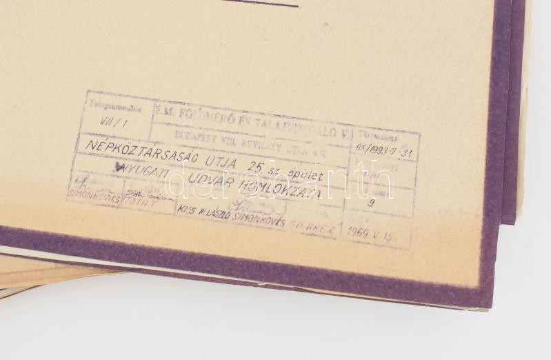 1969 Bp., az Állami Balettintézet (Drechsler-palota) épületének (VI., Népköztársaság útja [Andrássy út] 25., az Operával szemben) felújítási tervei, össz. 8 db nagyméretű tervrajz, az épület külső, ill. belső udvarra néző homlokzatainak vázlataival. Készítő: ÉM Földmérő és Talajvizsgáló Vállalat, méretarány: 1 : 50. Változó méretben (cca. 109x88 cm és 163x88 cm között) és állapotban, mappában.