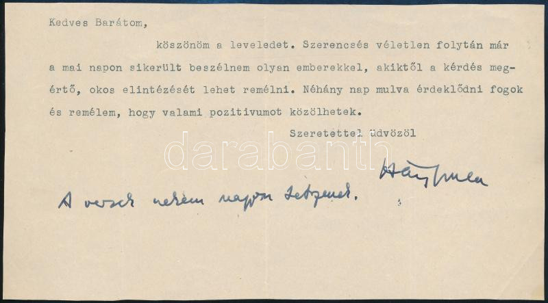 Háy Gyula (1900-1975) autográf sorával és aláírással ellátott levele T... https://www.darabanth.com/de/472-Fernauktion/472.0/Kunst-Dokumente-andere-Sammelgebiete/Historische-Dokumenten-Handschriften~1000022/Hay-Gyula-1900-1975-autograf-soraval-es-alairassal-ellatott-levele-Torok-Rezso-1895-19~II2878058