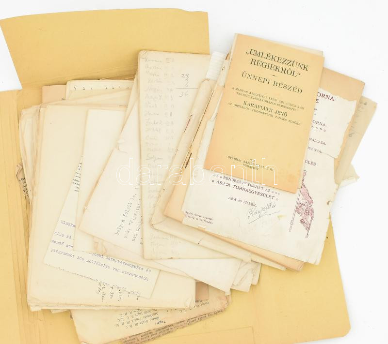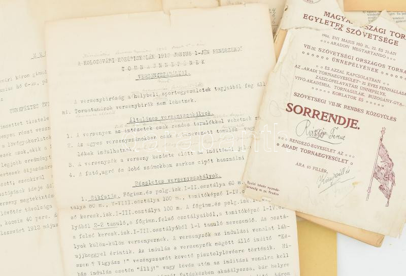 cca 1900-1940 Sport gyűjtemény. Magyar sportegyesületek meghívói, sport versenyek programja, nagyon sok sporrtal kapcsolatos újságkivágás, a kolozsvári egyetem sporttal kapcsolatos folyamodványai miniszterhez vívóterem építésére, stb