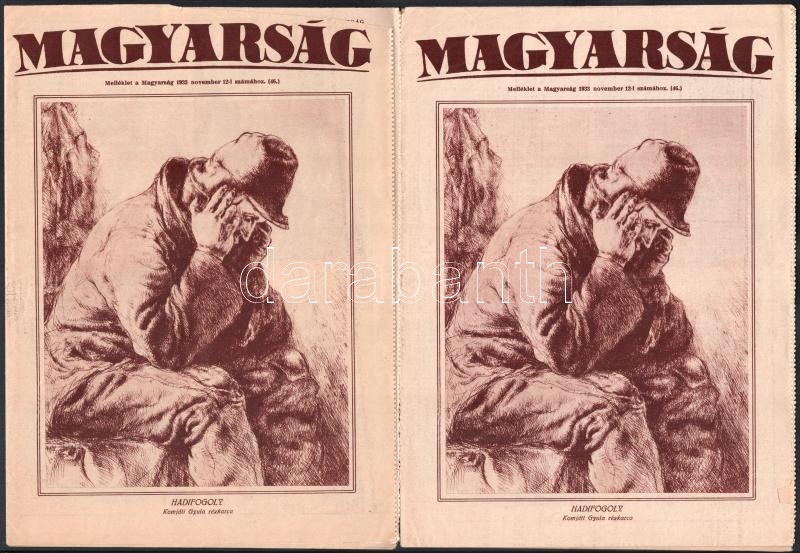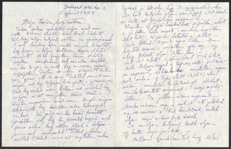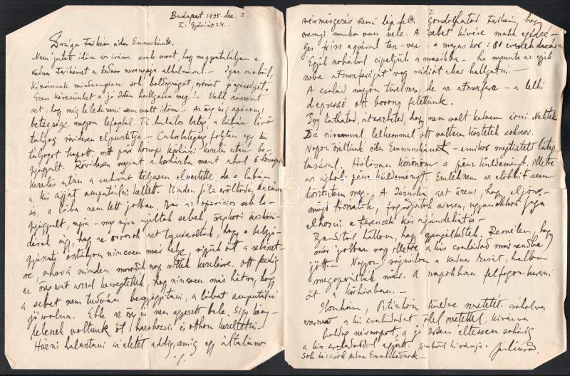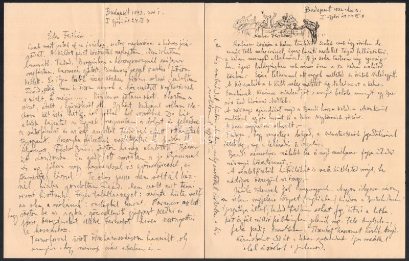 cca 1930 Komjáti-Wanyerka Gyula (1894-1958): Autográf levelek a festőművész, grafikustól, 9 beírt oldalon, saját kezű rajzzal, édes Ferikém megszólítással, mellékelve a Magyarság c. újság két száma a művész megjelent grafikáival