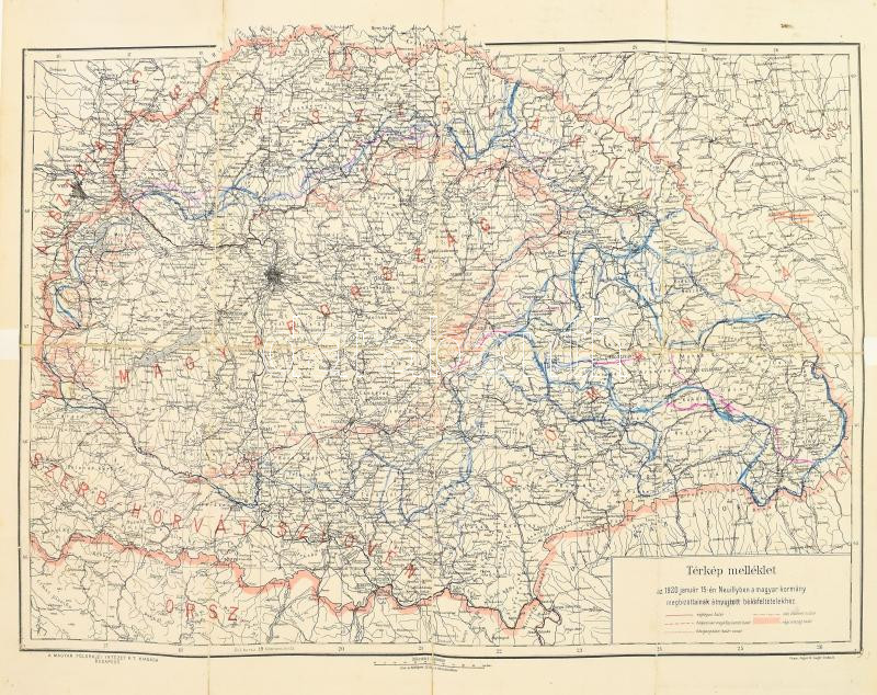 Térképmelléklet az 1920 január 15-én Neuillyben a magyar kormány megbízottainak átnyújtott békefeltételekhez Magyar Földrajzi Intézet 60x48 cm hátoldalon ragasztással