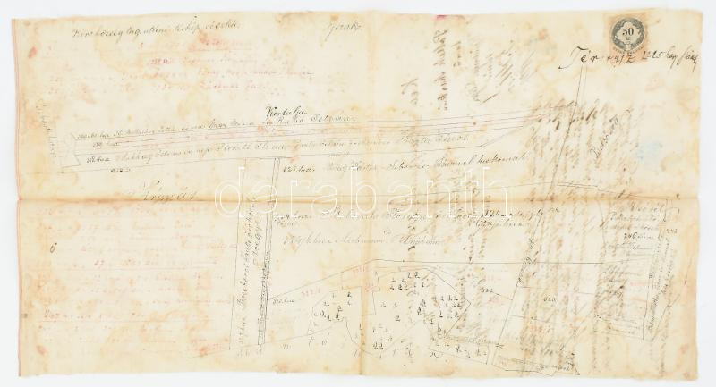 Beschreibung: cca 1880 Kér község tag. utáni térképe. Kézzel, vászonra rajzolt és feliratozott térkép 47x26 cm