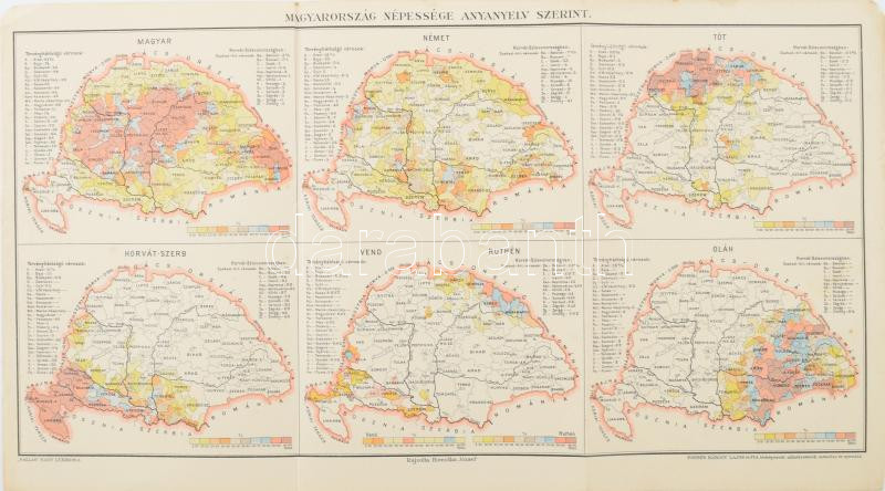 cca 1890-1900 Magyarország népessége anyanyelv szerint, rajzolta: Homolka József, a Pallas Nagy Lexikona melléklete, Bp., Posner Károly Lajos és Fia, 43x24 cm