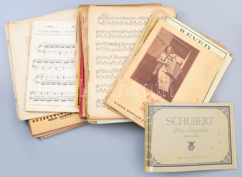 17 db modern zongora kotta, kottagyűjtemény zongoraiskola, vegyes állapotban, egy-kettőben hiányzó lapok