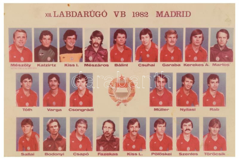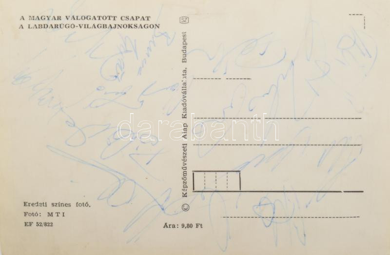1982 A magyar labdarúgó válogatott által aláírt és hazaküldött képeslap Sydneyből a Sydney Olimpic elleni mérkőzésről. Mészőly, Pölöskei, Katzirz Béla, Szántó Gábor, Kerekes Attila, Garaba Imre, Tóth József. Rab Tibor, Törőcsik András, Csongrádi Ferenc, Bodonyi Béla, Kiss László / Hungarian football team autograph signed postcard