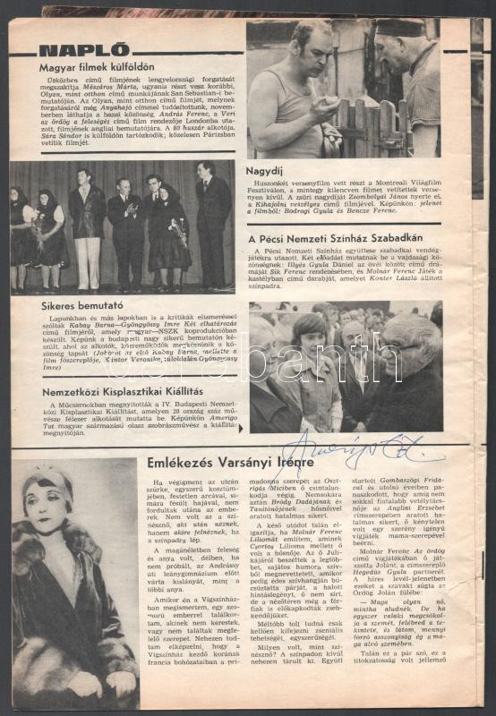 Beschreibung: Amerigo Tot autográf aláírása Film Színház Muzsika folyóirat egy 1978-ban megjelent lapszámában.