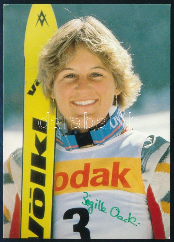 Beschreibung: Brigitte Oertli (1962) svájci síversenyző aláírt képeslap /