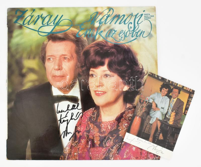 Dedikált Záray-Vámosi lemez és aláírt képeslap https://www.darabanth.com/de/472-Fernauktion/472.0/Kunst-Dokumente-andere-Sammelgebiete/Signatur~1000023/Dedikalt-Zaray-Vamosi-lemez-es-alairt-kepeslap~II3005297