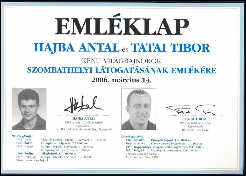 Hajba Antal és Tatai Tibor világbajnok kenusok aláírásai emléklapon 20... https://www.darabanth.com/de/472-Fernauktion/472.0/Kunst-Dokumente-andere-Sammelgebiete/Signatur~1000023/Hajba-Antal-es-Tatai-Tibor-vilagbajnok-kenusok-alairasai-emleklapon-20x30-cm~II3165066