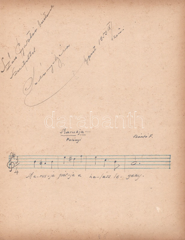 Polónyi Béla (1925-1998) nótaszerző autográf, kottás (,,Marusja párja ... https://www.darabanth.com/de/472-Fernauktion/472.0/Kunst-Dokumente-andere-Sammelgebiete/Signatur~1000023/Polonyi-Bela-1925-1998-notaszerzo-autograf-kottas-Marusja-parja-a-halaszlegeny-dedi~II3182694