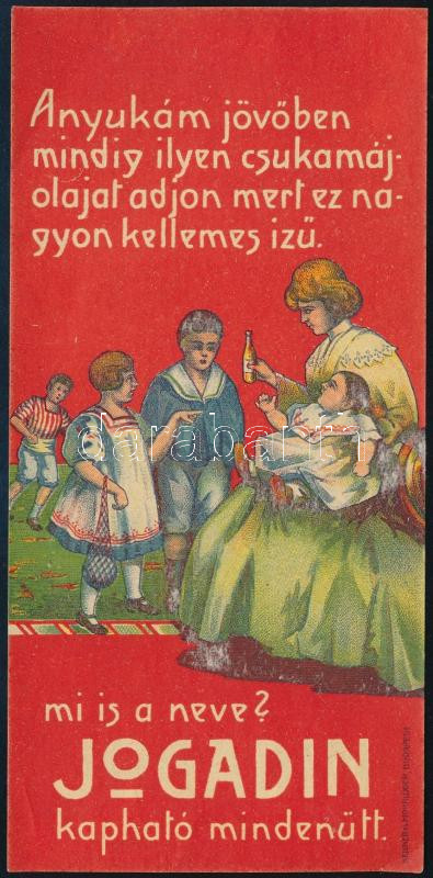 Jogadin csukamájolaj számolócédula https://www.darabanth.com/de/472-Fernauktion/472.0/Kunst-Dokumente-andere-Sammelgebiete/Werbungen~500001/Jogadin-csukamajolaj-szamolocedula~II3199771