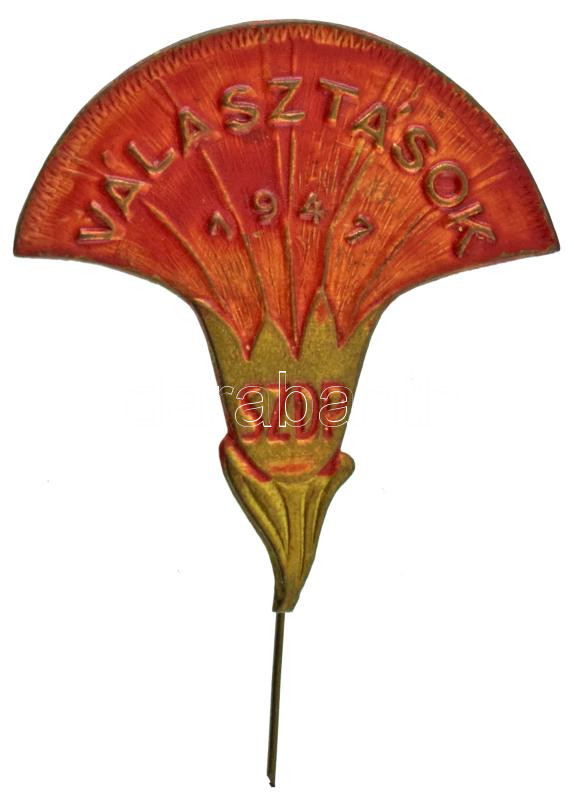1947. "Választások 1947 - SZDP (Szociáldemokrata Párt)" festett bronz jelvény (41x38mm) T:AU