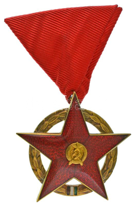 1953. "Vörös Csillag Érdemrend" aranyozott, zománcozott bronz kitüntetés mellszalagon T:AU / Hungary 1953. "Order of The Red Star" gilt, enamelled bronze decoration on ribbon C:AU NMK 611.