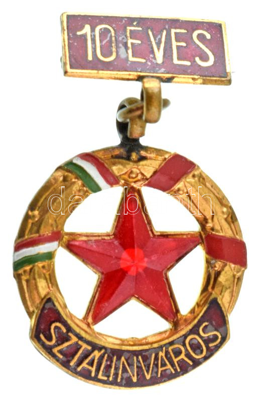 1955. "10 éves Sztálinváros" műgyantás fém jelvény (45x25mm) T:XF