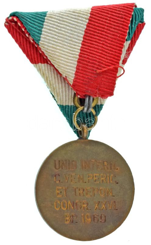 1969. "SEMMELWEIS IGNÁCZ FÜLÖP 1818-1865 / UNIO INTERN. C. VEN. PERIC. ET TREPON CONGR. XXVI. BP. 1969" bronz emlékérem mellszalagon T:AU