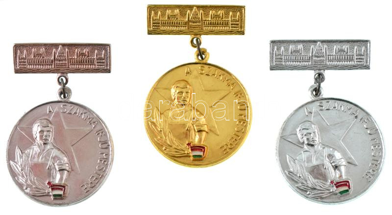 ~1970-1980. "A szakma ifjú mestere" arany, ezüst és bronz(?)... https://www.darabanth.com/de/472-Fernauktion/472.0/Numismatik/Faleristik-Auszeichnungen-Medaillen-Orden~2000022/7E1970-1980-A-szakma-ifju-mestere-arany-ezust-es-bronz-fokozatai-Al-jelvenyek-TAU~II3197758