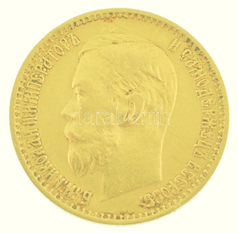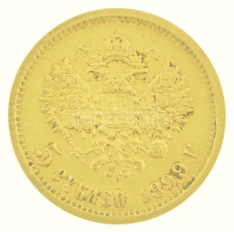 Orosz Birodalom 1899. 5R Au "II. Miklós" (4,29g/0.900) T:XF,VF patina, kis karc Russian Empire 1899. 5 Rubles Au "Nicholas II" (4,29g/0.900) C:XF,VF patina, small scratch Krause Y#62