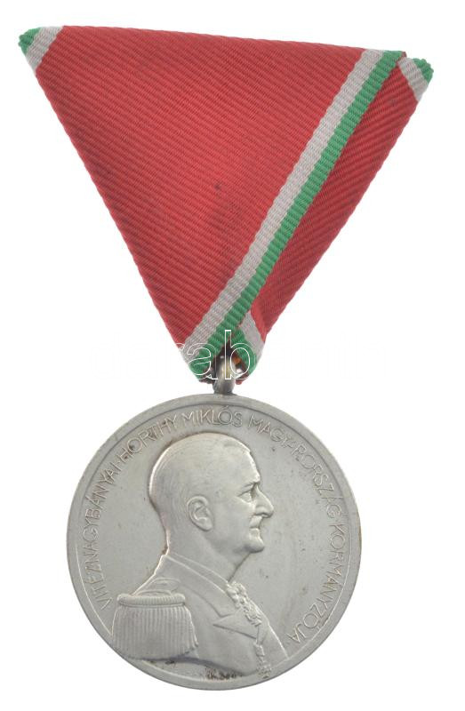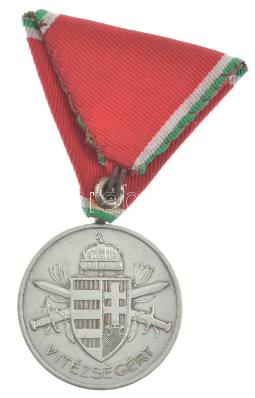 Hungary 1939-1945. "Large Hungarian Silver Gallantry Medal" silver-plated bronze decoration, with "BRONZ" hallmark on edge, original ribbon. Sign.: BERÁN L. C:XF