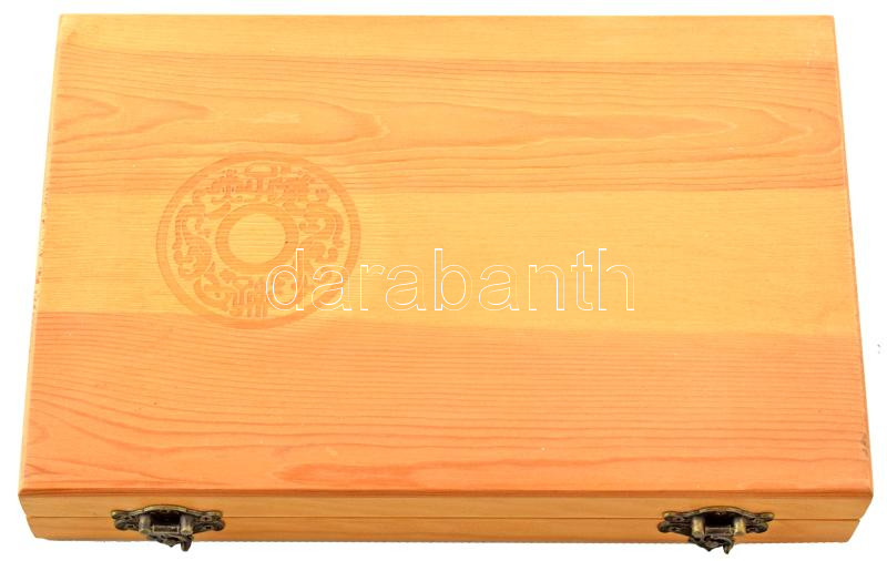 Beschreibung: Fából készült doboz, benne 100db műanyag kapszulával, használt, jó állapotban