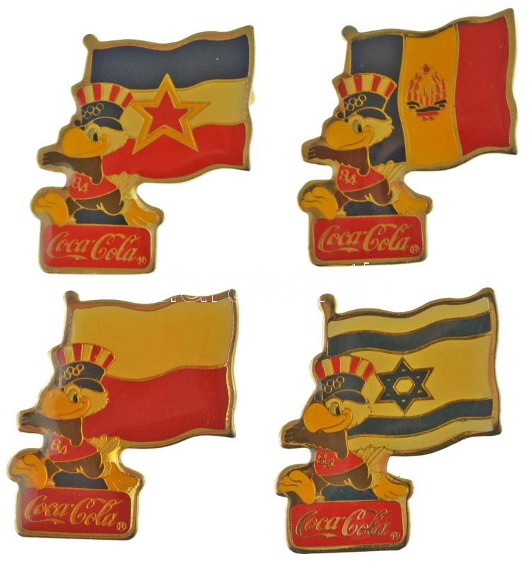 Amerikai Egyesült Államok 1984. "Résztvevő országok - Los Angeles" műgyantás fém olimpiai jelvény (4xklf: Izrael, Jugoszlávia, Lengyelország, Románia) T:UNC,AU USA 1984. "Participating countries - Los Angeles" resin metal Olympic badges (4xdiff: Israel, Yugoslavia, Poland, Romania) C:UNC,AU