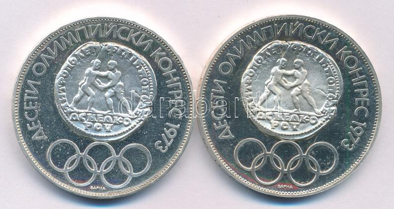 Bulgária 1975. 10L Ag "10. Olimpiai Kongresszus" (2xklf), különböző peremirattal T:AU (PP) Bulgaria 1975. 10 Leva Ag "10th Olympic Congress" with (2xdiff), with different edge inscriptions C:AU (PP) KM# 93.1, KM# 93.2