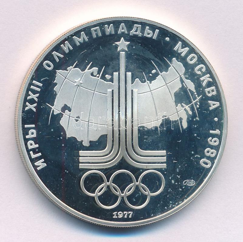 Szovjetunió 1977. 10R Ag "Moszkvai Olimpia 1980 - A Szovjetunió térképe" T:AU (PP) folt Soviet Union 1977. 10 Roubles Ag "Moscow Olympics 1980 - Map of USSR" C:AU (PP) spotted Krause Y# 150